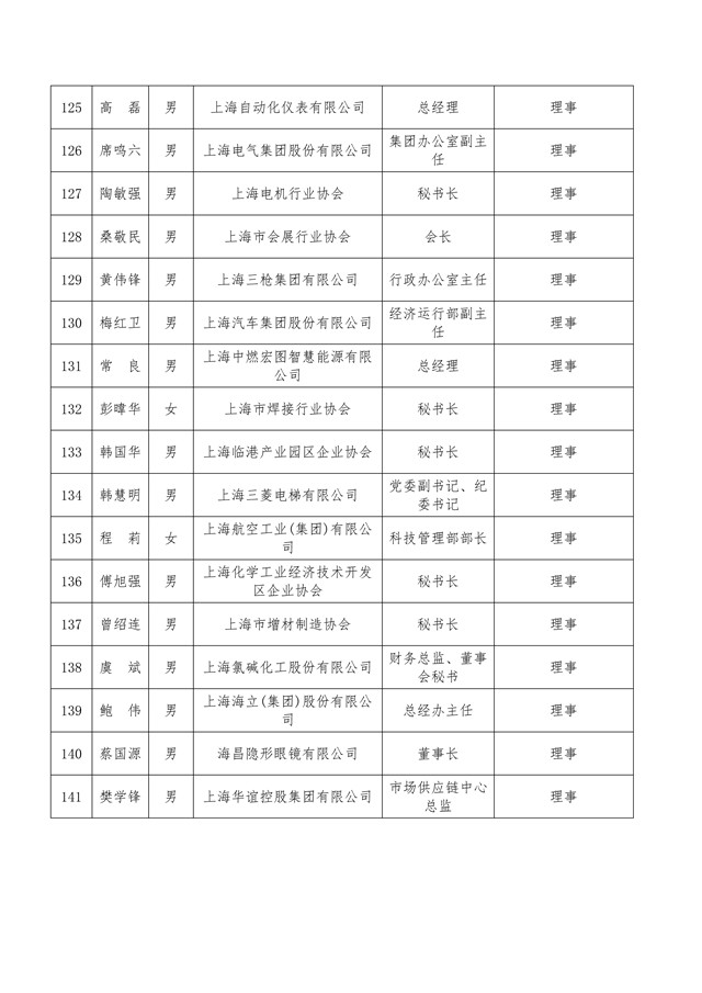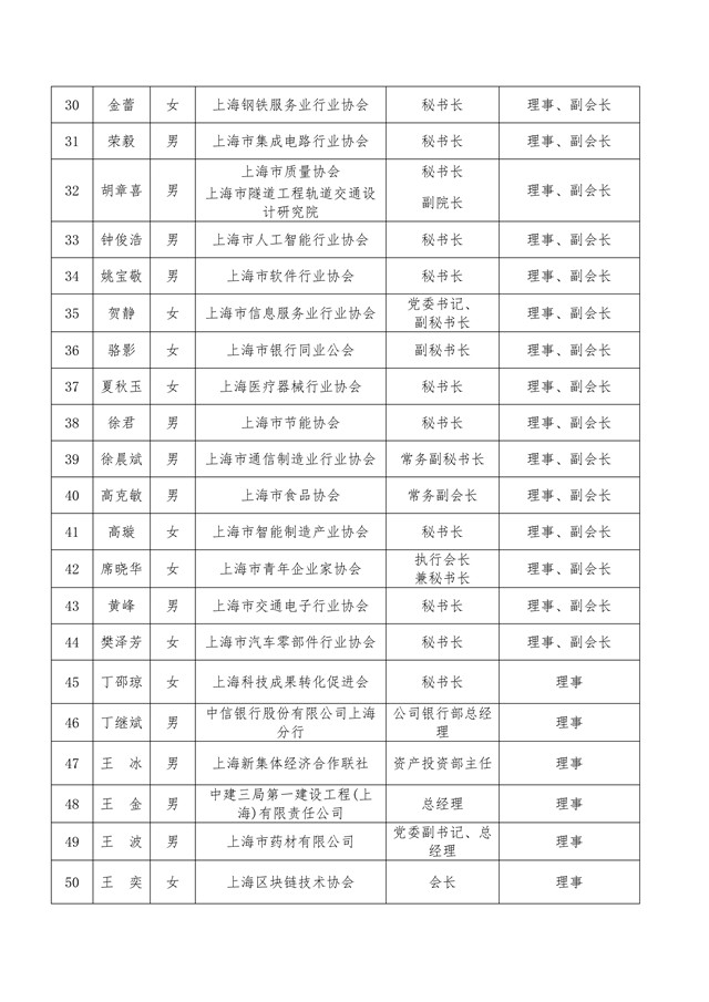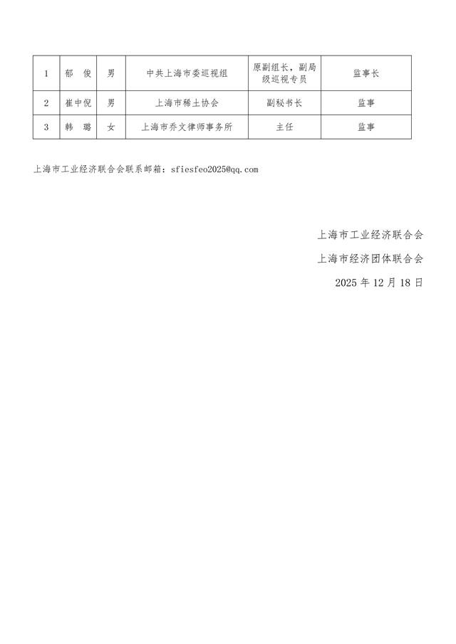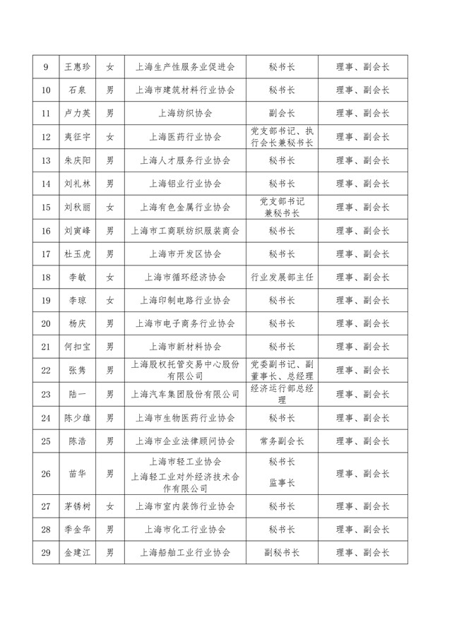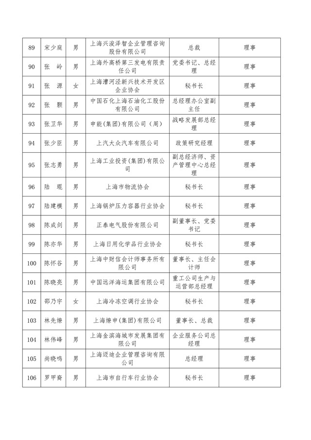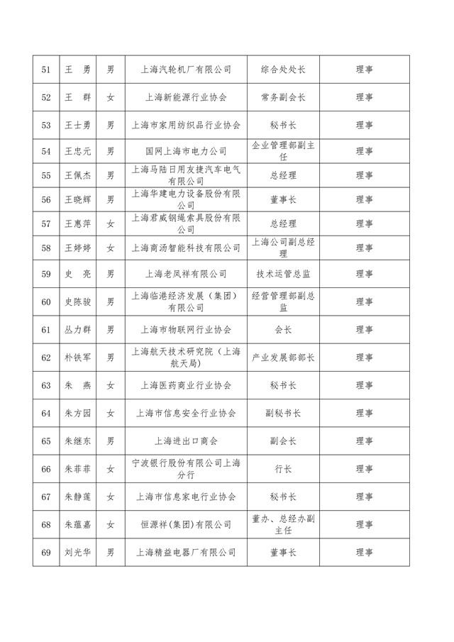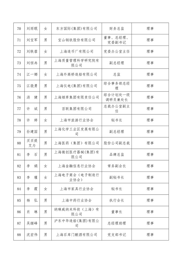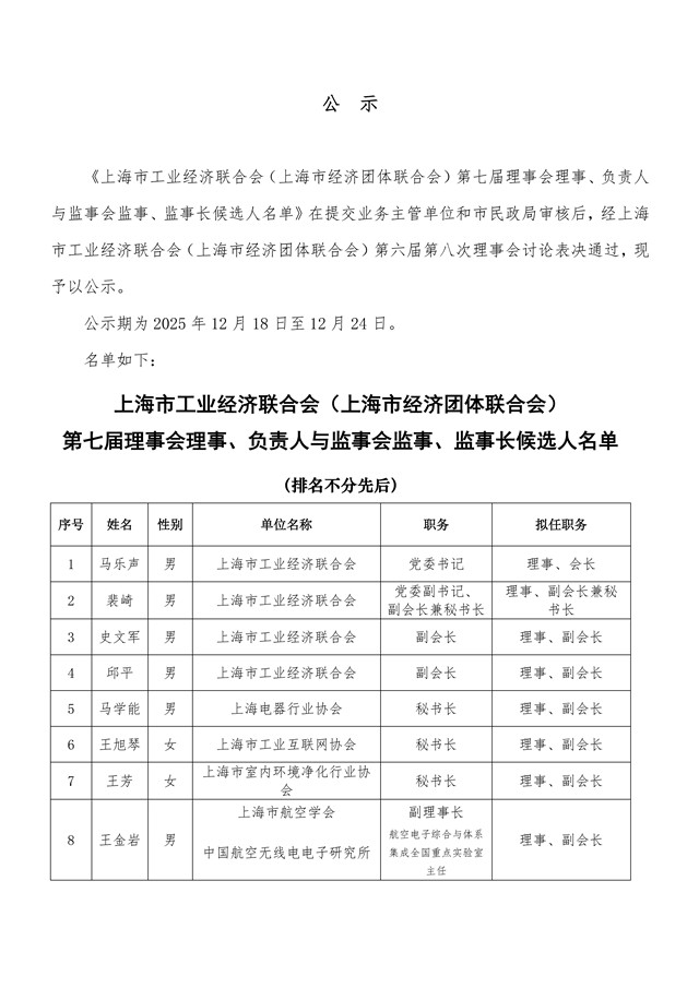 上海市工业经济联合会(上海市经济团体联合会)第七届理事会理事、负责人与监事会监事、监事长候选人名单公示